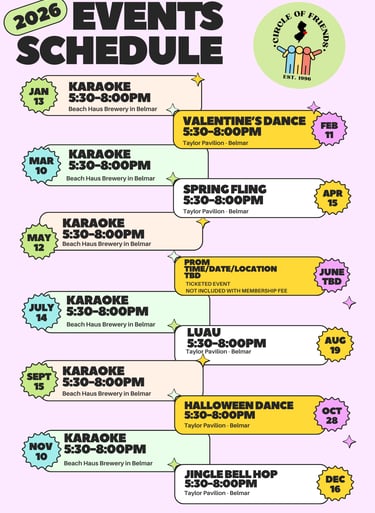 Check out our list of upcoming dates for Circle of Friends families and friends.